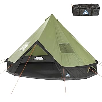 Danchel teepee tent is a very roomy and well waterproofed tent suitable for camping and other outdoor trips and journeys. Winterial 6 7 person teepee tent 12 x 12 for family camping or festivals with windows and mesh vents pack weight 15 pounds lbs includes stakes poles rain cap stabilizer.