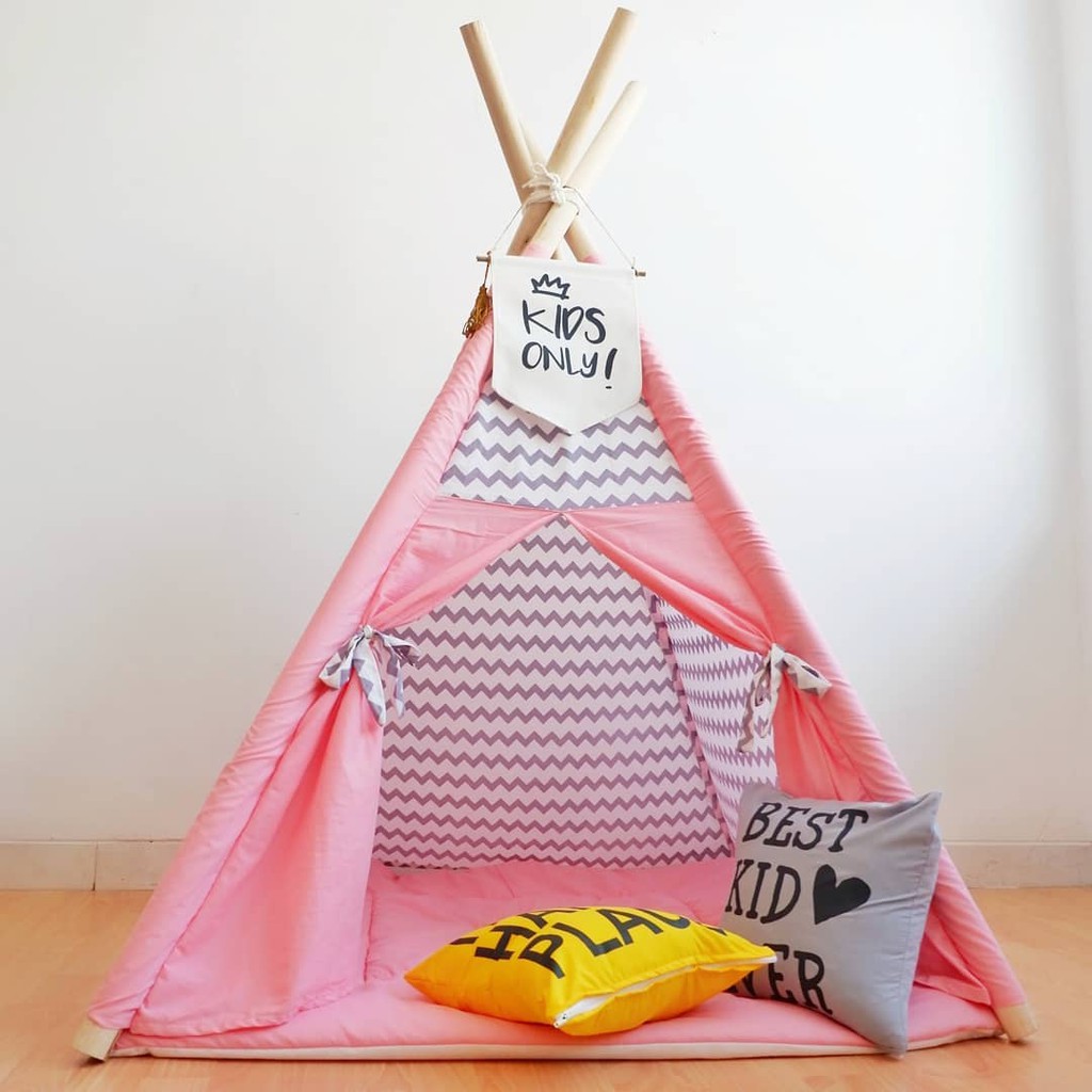 Teepee Tent Chevron Grey Mix Pink Tenda Mainan Anak Mainan Anak